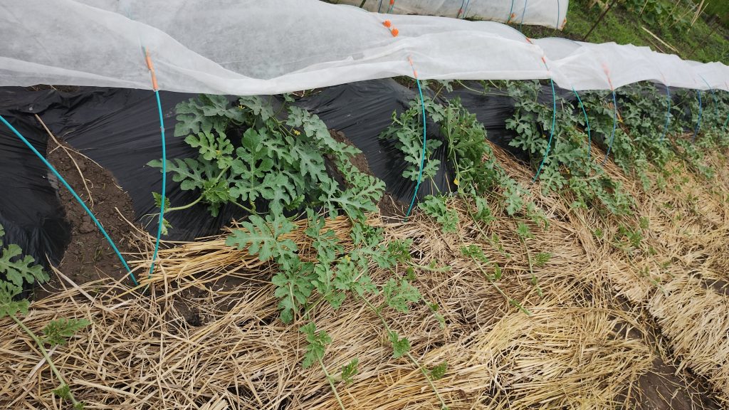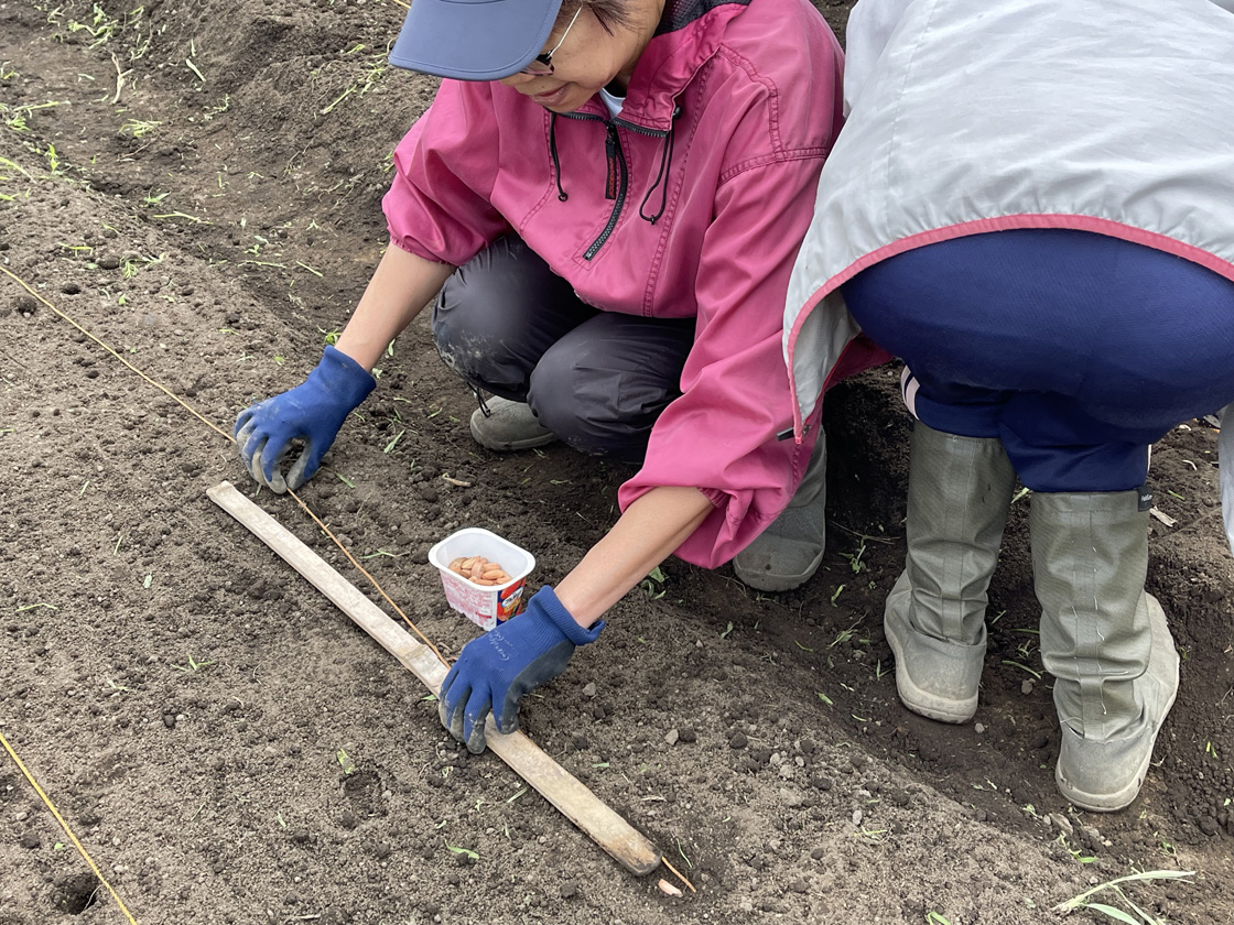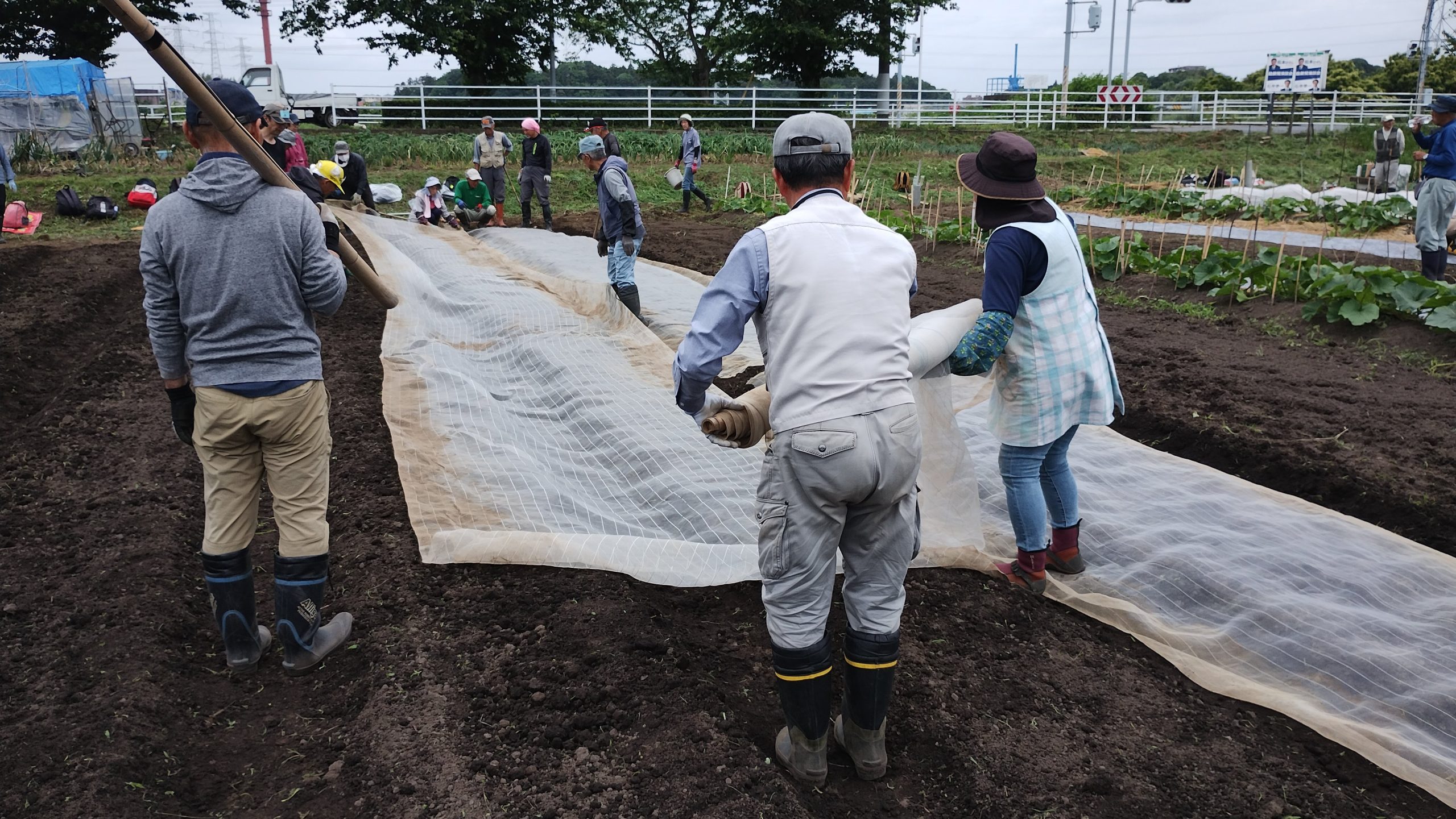 落花生は畝たてと播種をたくさんしました。仕上げには、種を鳥に食べられないように不織布を引きましたが、植えた範囲が広いので、大作業になりました。