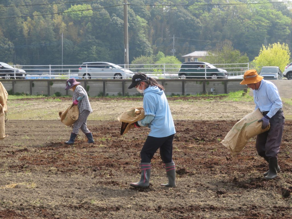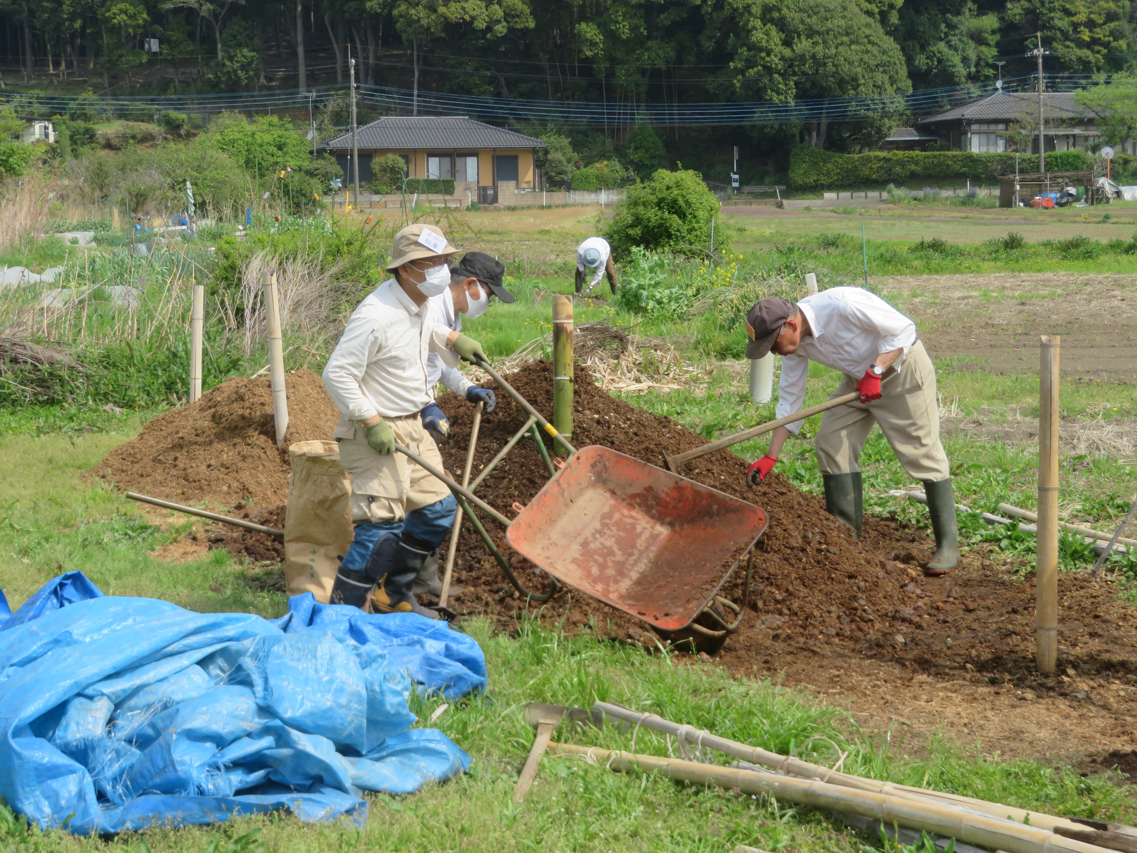 今日は、枝豆の播種、すいかの定植準備、暗渠清掃、馬糞堆肥の切返しなどを行いました。