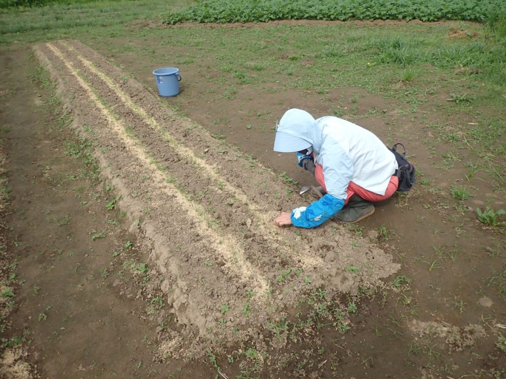 1年次生は、かぼちゃの畝立てと定植、落花生の施肥と畝立て、圃場管理と除草を行いました。今年から1年次生は別行動なのですが、松元さんと宮平さんによるしっかりとした指導があるみたいで、とても良いですね。先輩たちは皆さん羨ましがっています。