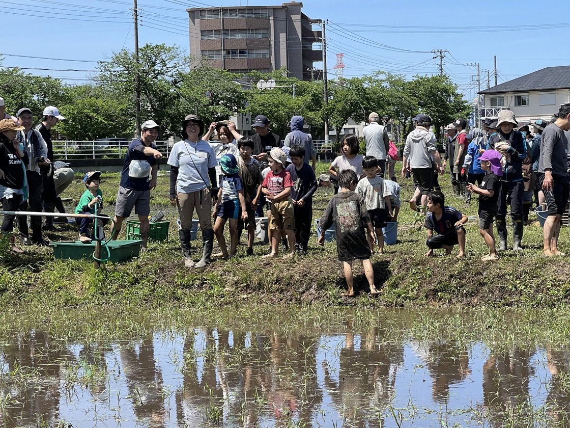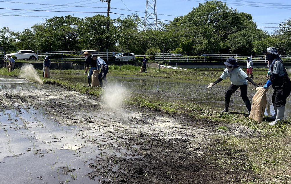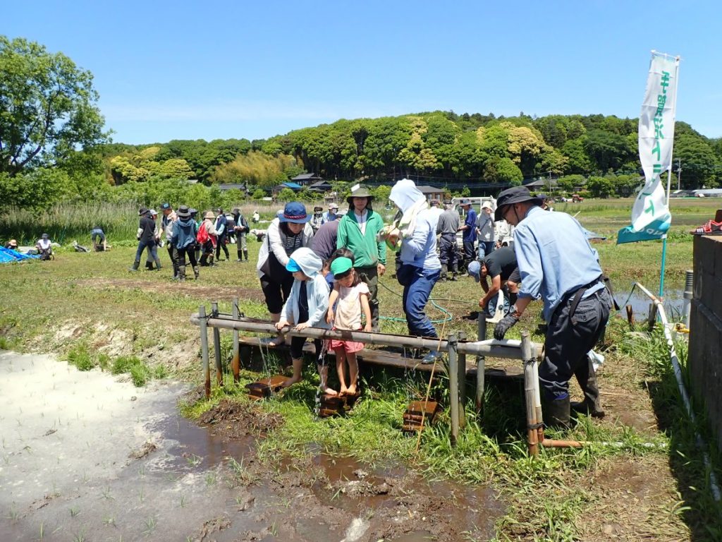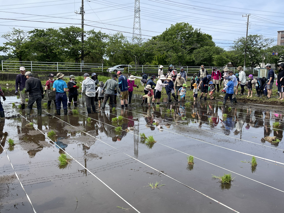 今日は、外部の方も参加して、大勢で田植えをしました。
