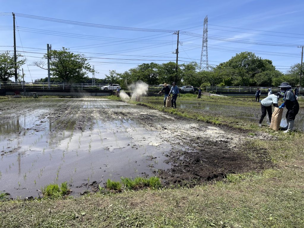 田植えは、目印の紐を張ることから始めましたが、余裕をもって予定の時間前に終了しました。