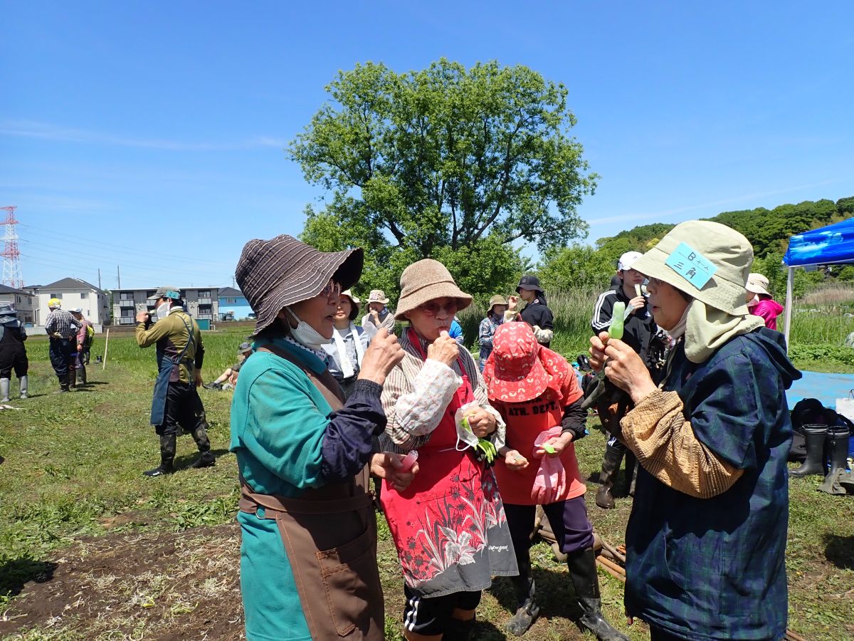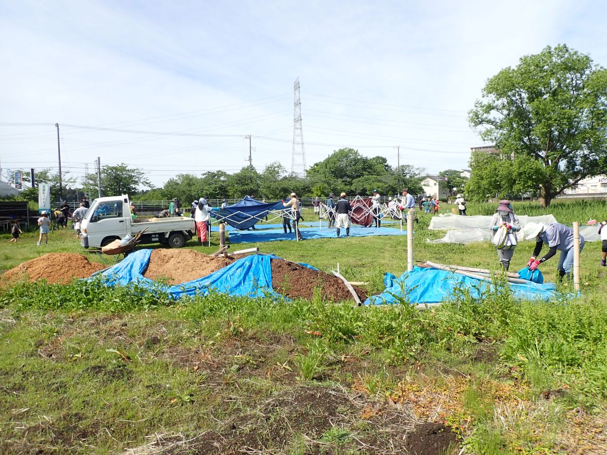 田植え以外にも、エダマメの畝立てと播種、暗渠清掃と馬糞堆肥の切り返しも行いました。