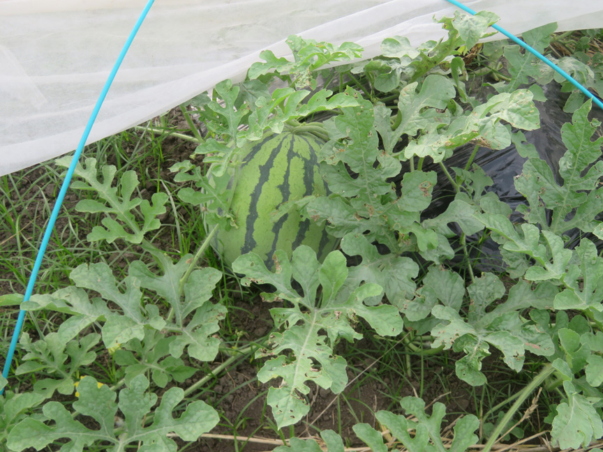 ・スイカ畑 こちらも雑草に覆われているようですが、スイカもできてきました。