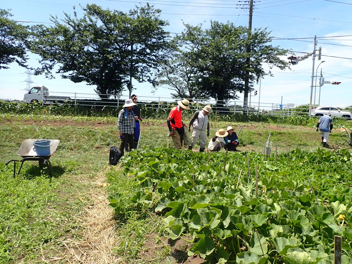 1年次生は、これらとは別に、圃場周辺の除草、落花生の除草と土寄せ、かぼちゃの整枝、さつまいもの除草と土寄せ(城址下手前圃場)を行いました。