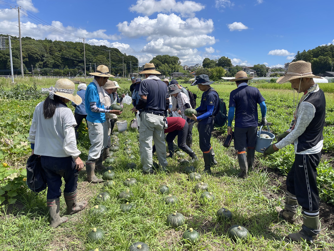 活動の様子(写真集) 2025/08/02農教室の様子 活動の様子(写真集) 2025.08.07 毎日、暑い日が続きます。今日は、みかん山の管理、そばの施肥、かぼちゃの収穫と撤去、すいかの収穫と撤去、暗渠清掃と馬糞堆肥の切返し、冬水田圃の除草を実施しました。1年次生は、にんじん・レタスの施肥と畝立てです。 今日は、カボチャのお土産がまたありました。今年は、200個以上取れたようです。すごいですね。 稲の生育状況 ネギの生育状況 残渣にモアがけ かぼちゃの収穫