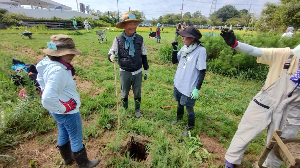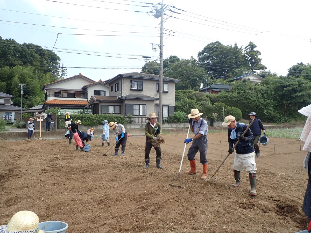 今日の作業は、人参は測量、そばの播種、だいこんは圃場管理、レタスの畝の整備、ねぎの除草と土寄せ、暗渠清掃と馬糞堆肥の切返し、ひまわりの種取りでした。