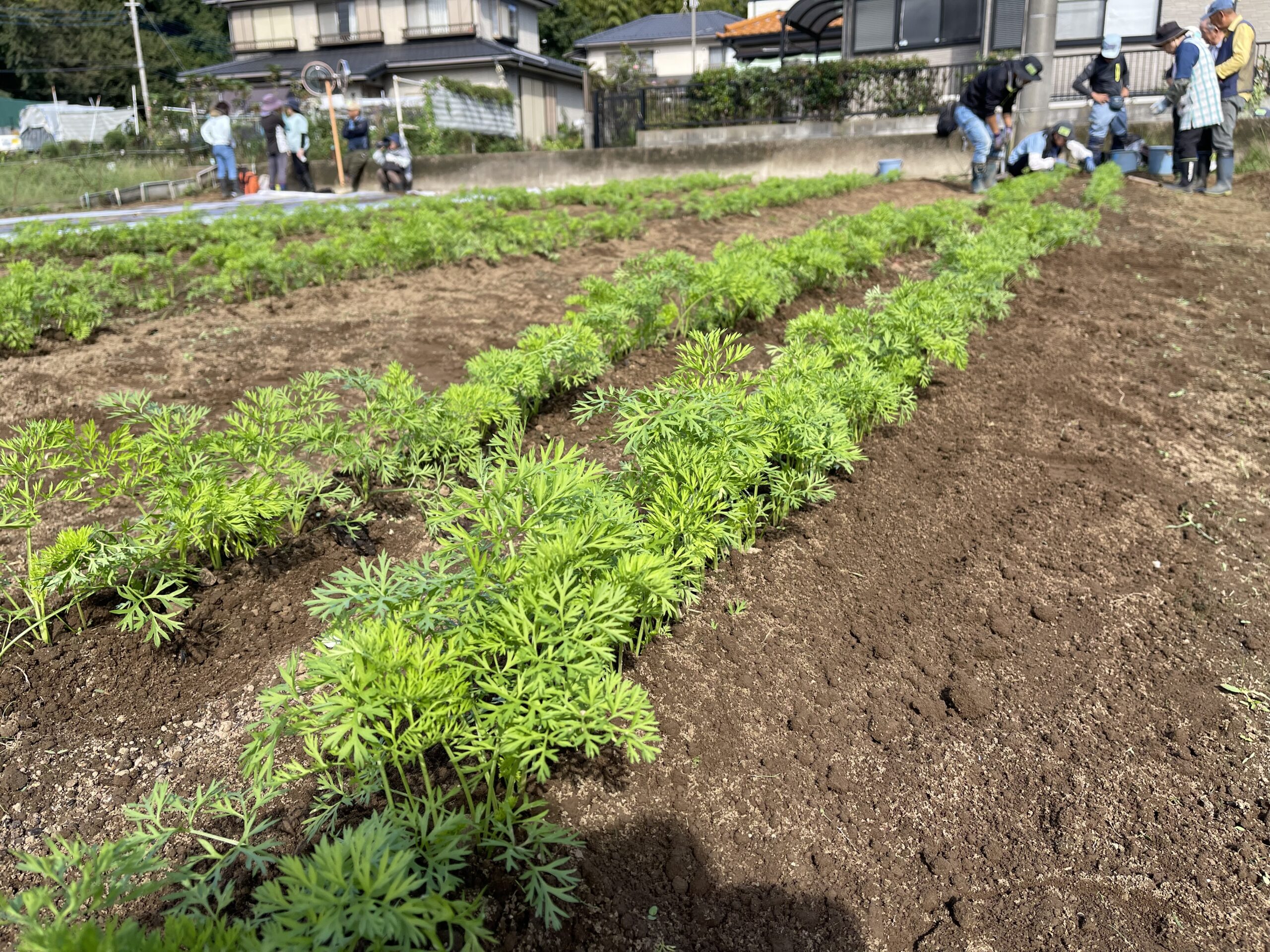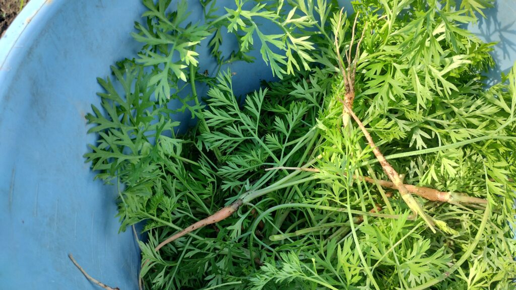 にんじんの間引き 間引いたにんじんも美味しくいただきます。