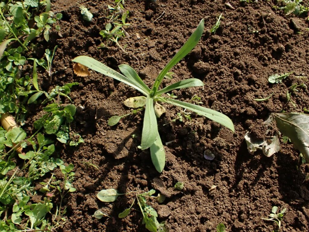 1枚目の写真で、右側にきれいに生え揃ってきたのは普通の菜の花です。