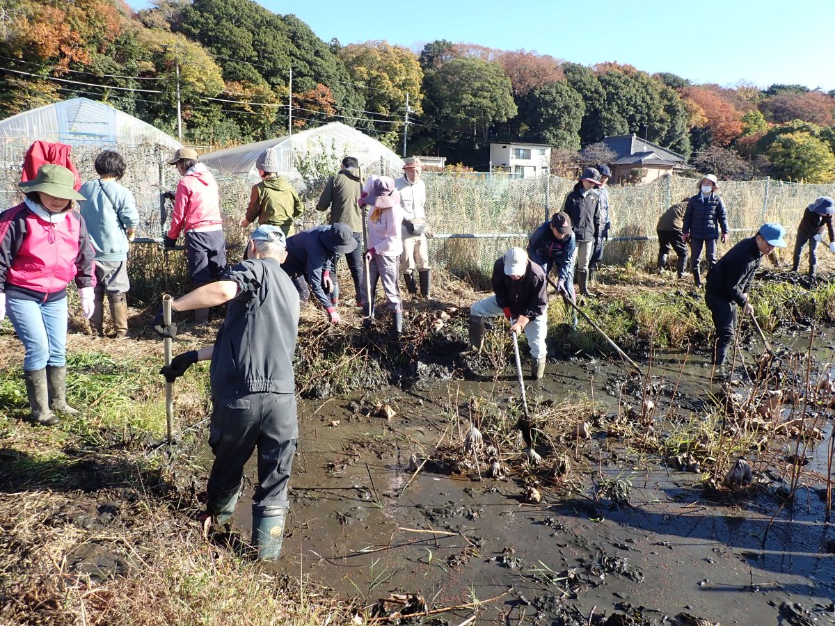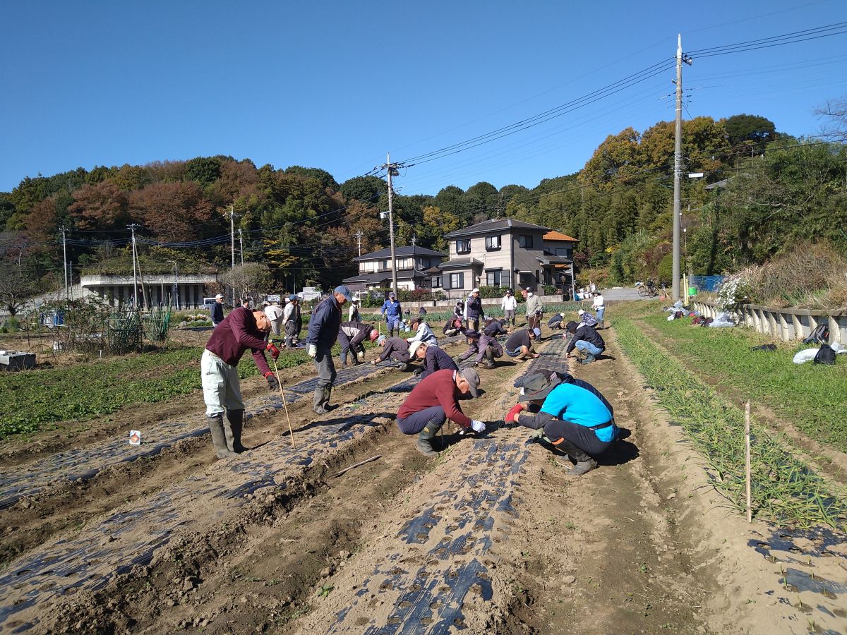 今日の作業は、花蓮池の整備、たまねぎの定植、暗渠清掃と馬糞堆肥の切り返し、そば祭りの準備、だいこんの収穫を行いました。