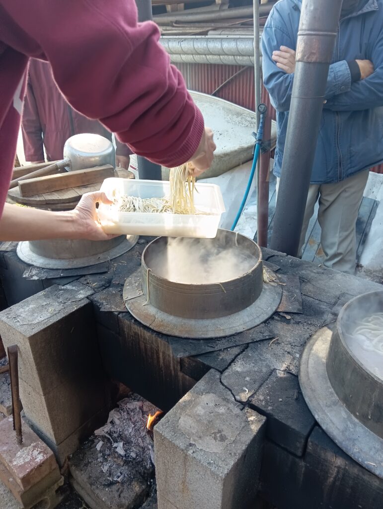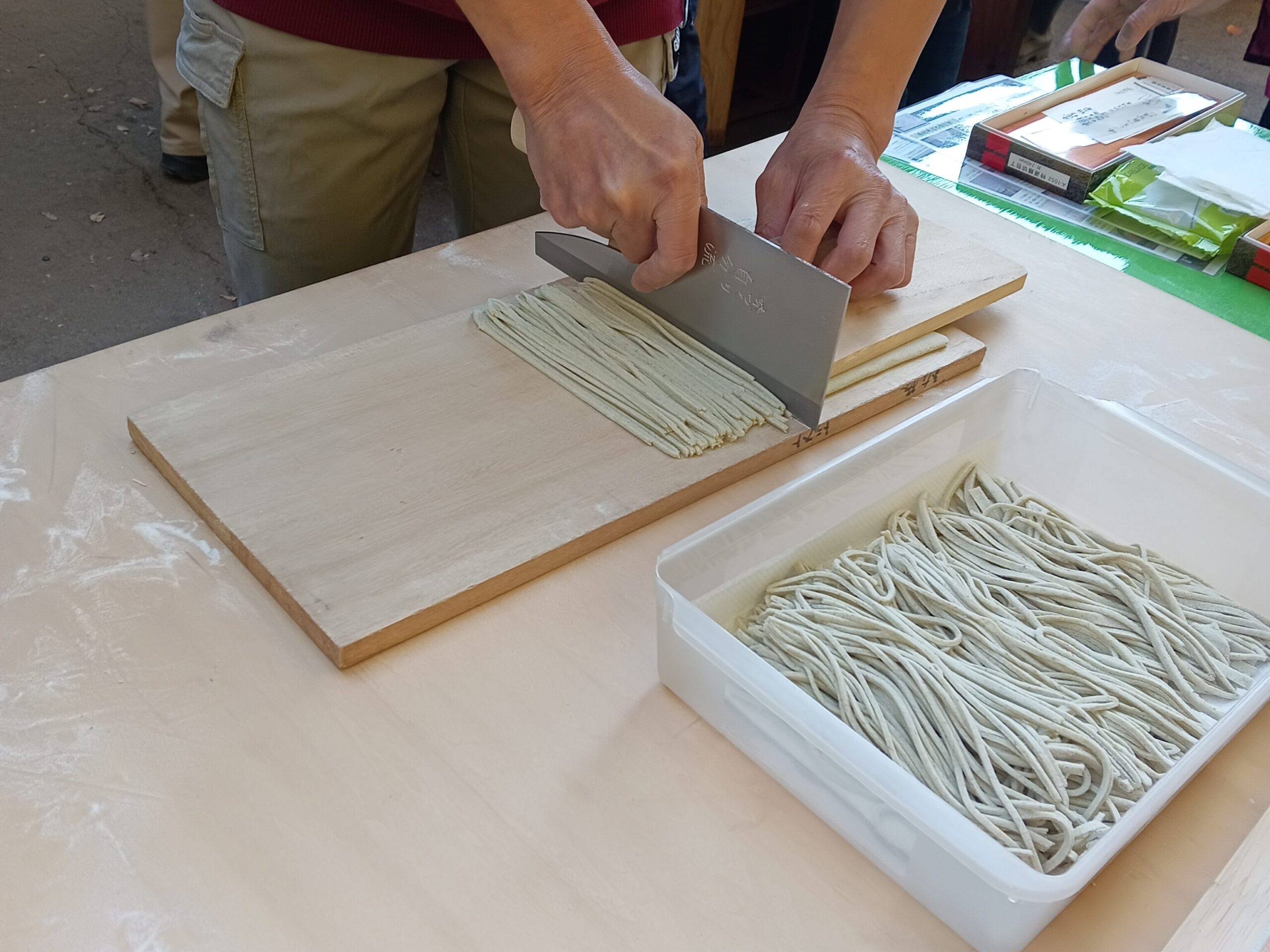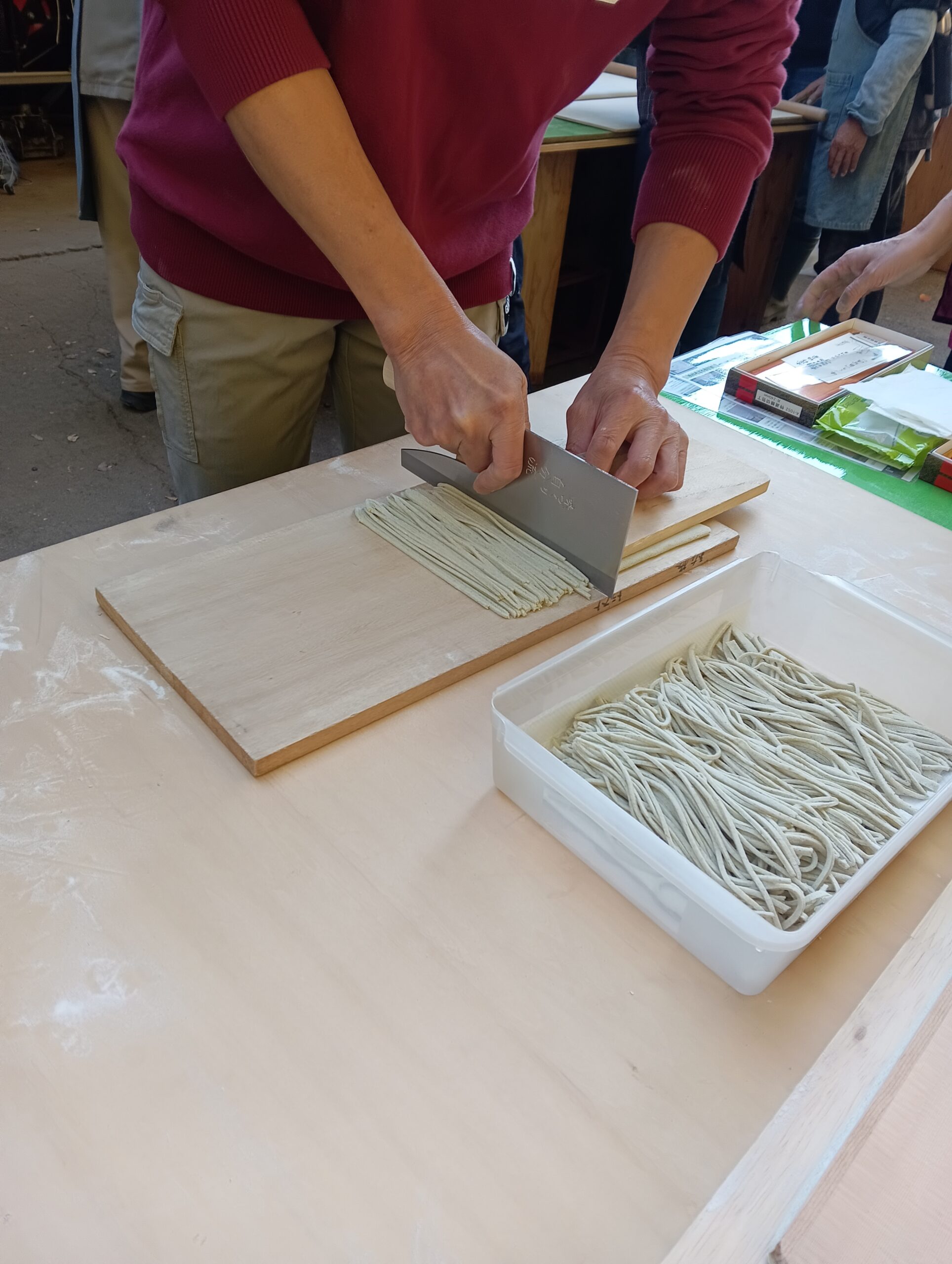 お知らせ活動の様子(写真集) 2025/11/29そば祭り お知らせ 2025.11.30 今日はそば祭りでした。そば勉強会の皆さん、ご指導ありがとうございました。3~4回転したと思いますので、さぞかし大変だったろうと思います。 そばを打つ手順は、水回し、練、延し、たたみ、切りです。皆で体験しました。 そして、そばを茹でる。 付け合せに、さつまいもを蒸す。 出来上がったそばと芋は皆で美味しくいただきました。 山の紅葉もとても綺麗でした。