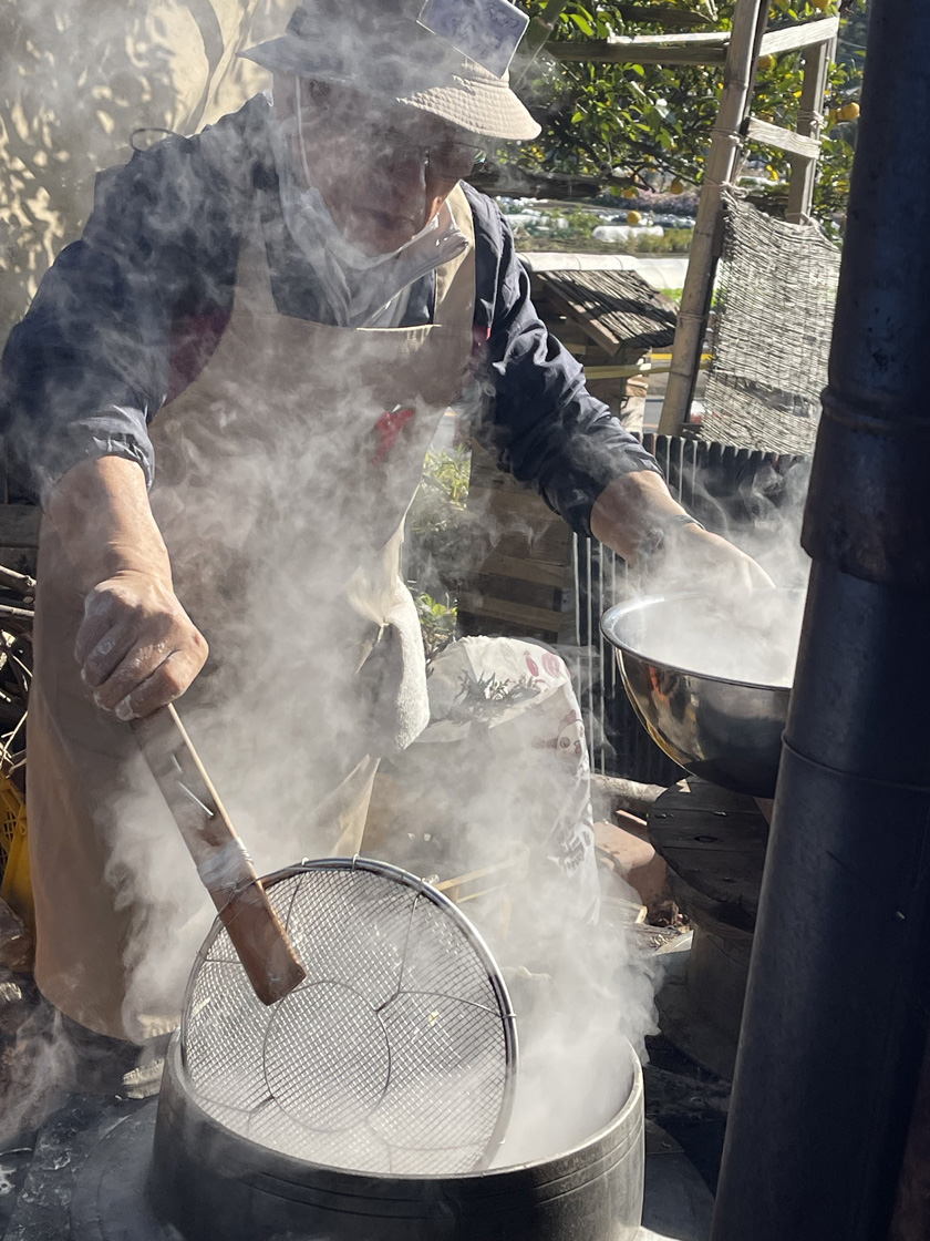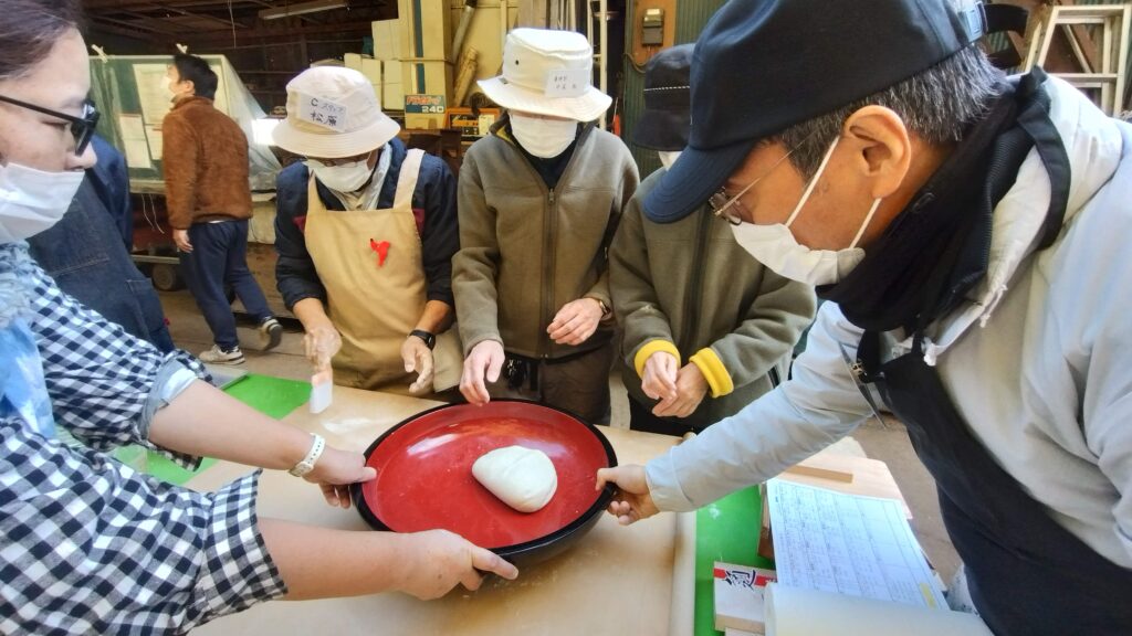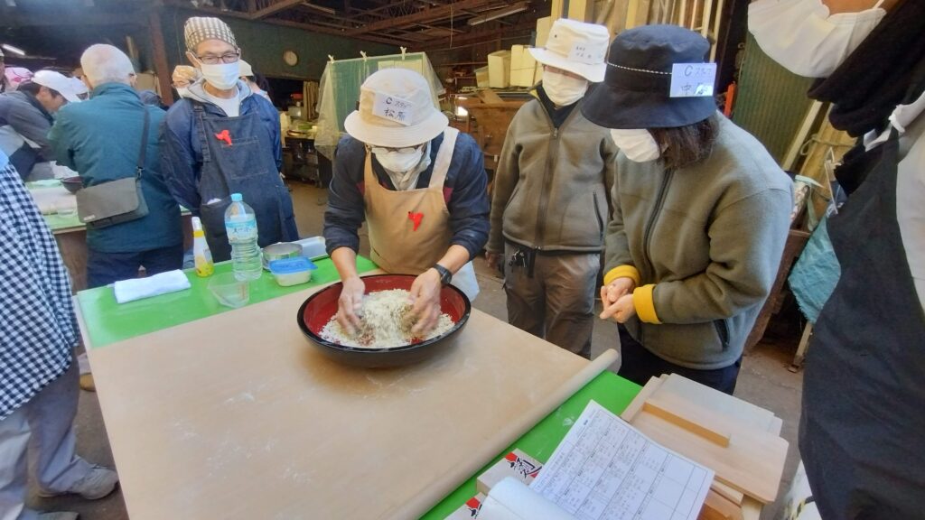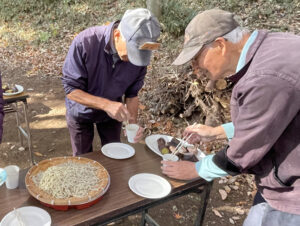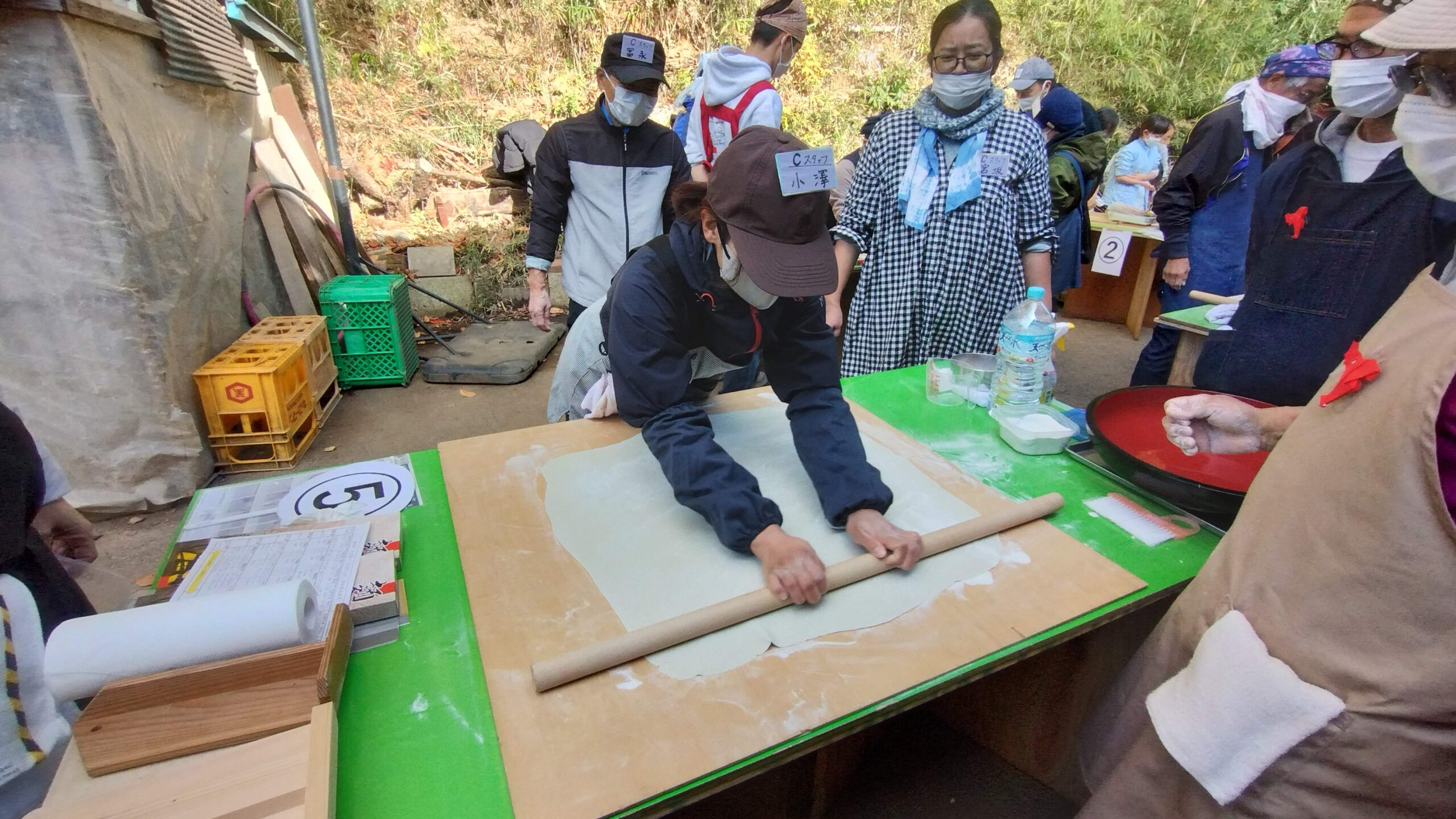 お知らせ活動の様子(写真集) 2025/11/29そば祭り お知らせ 2025.11.30 今日はそば祭りでした。そば勉強会の皆さん、ご指導ありがとうございました。3~4回転したと思いますので、さぞかし大変だったろうと思います。 そばを打つ手順は、水回し、練、延し、たたみ、切りです。皆で体験しました。 そして、そばを茹でる。 付け合せに、さつまいもを蒸す。 出来上がったそばと芋は皆で美味しくいただきました。 山の紅葉もとても綺麗でした。