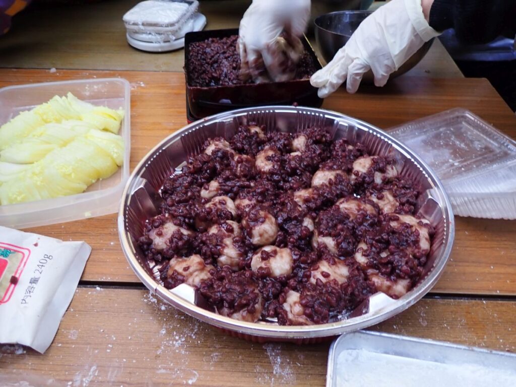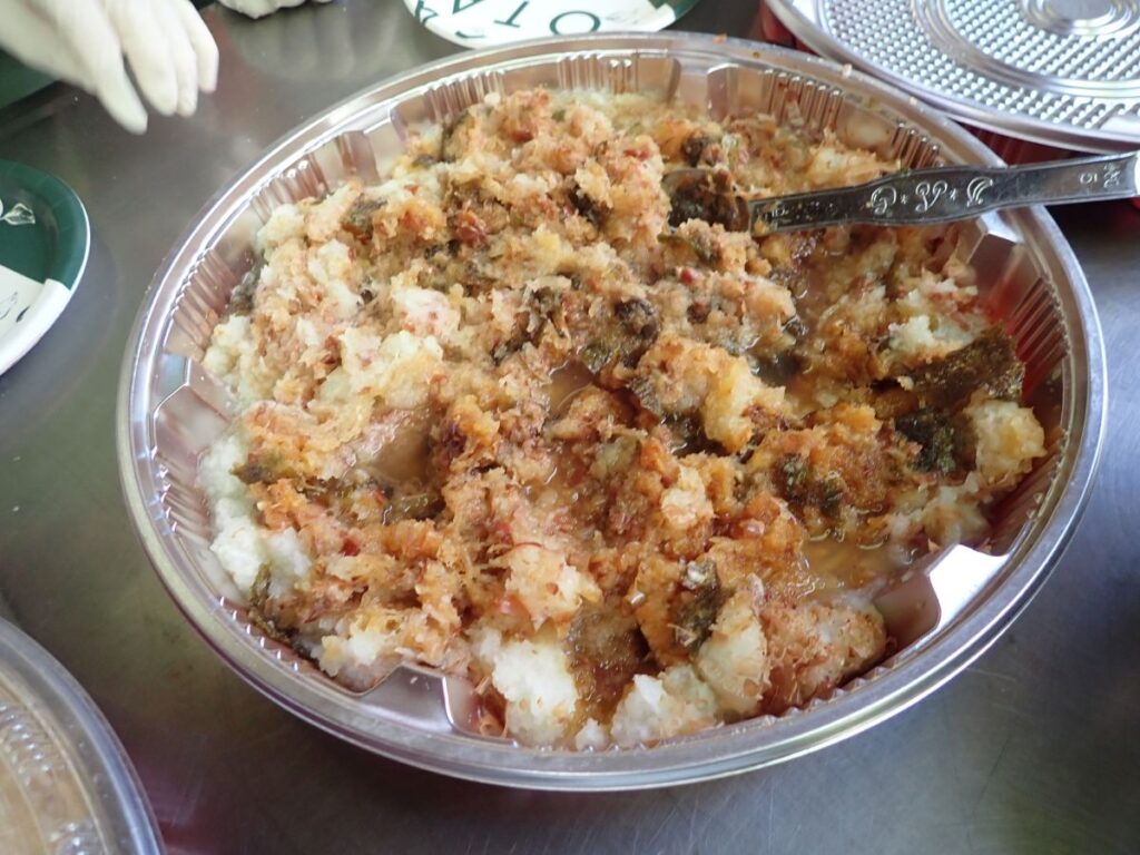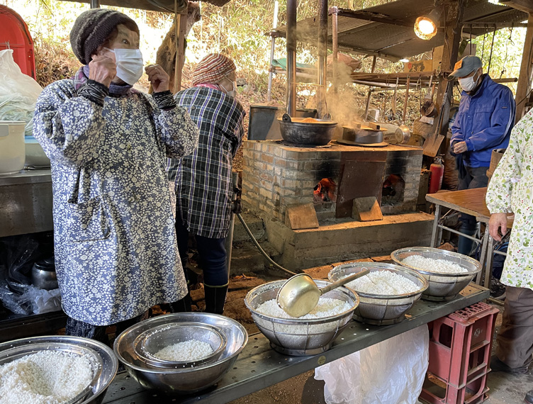 準備作業で、ダイコンを取って、お米を洗って、大根おろしを作って、準備も大変です。