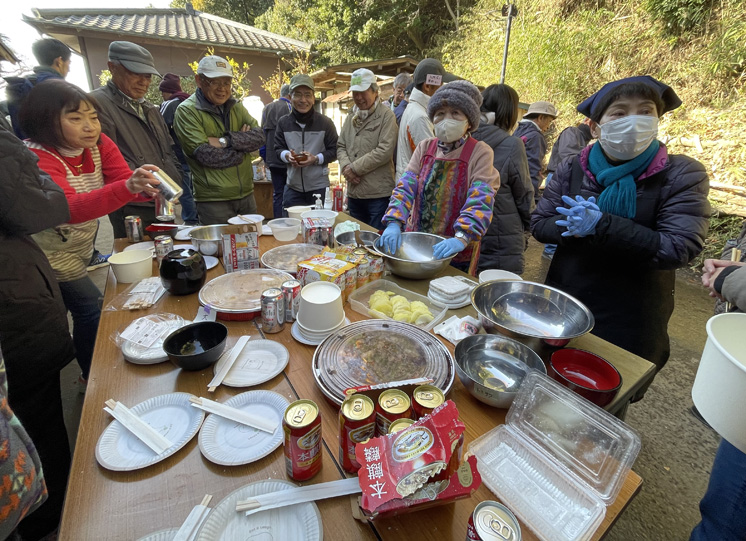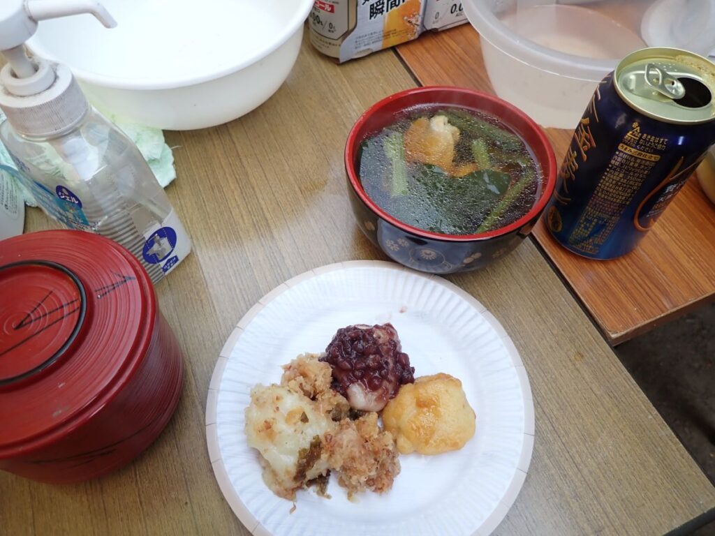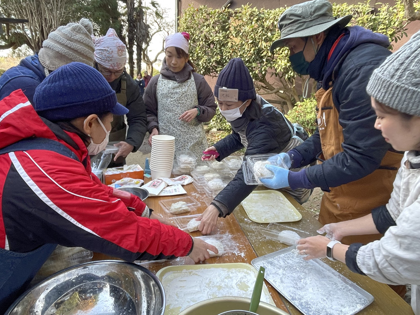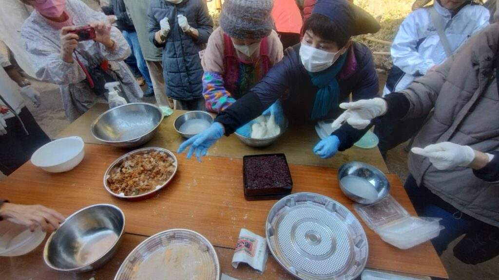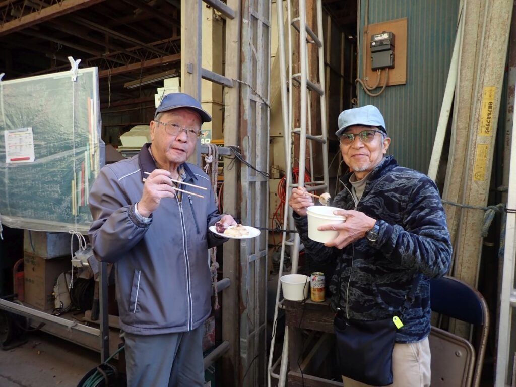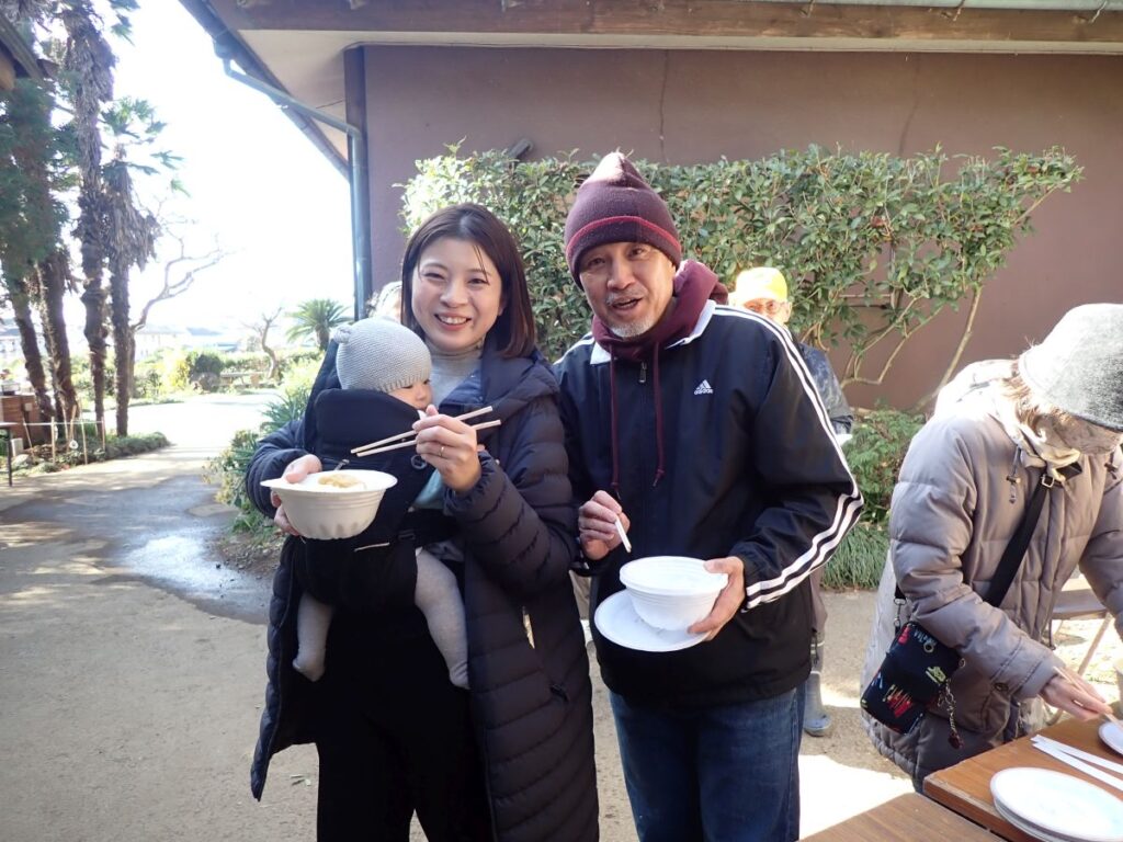 おみやげの丸餅をいただいて。餅つき大会は無事終了しました。