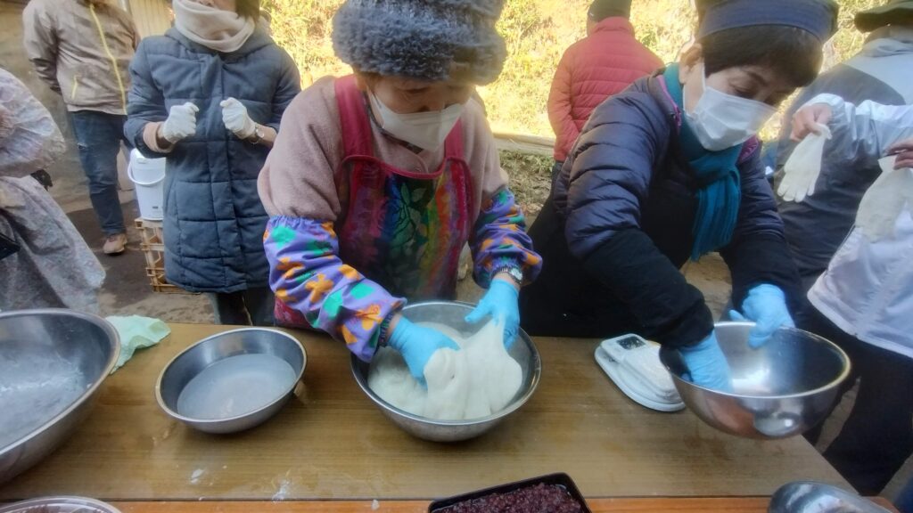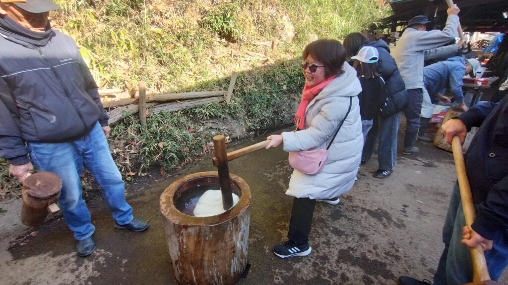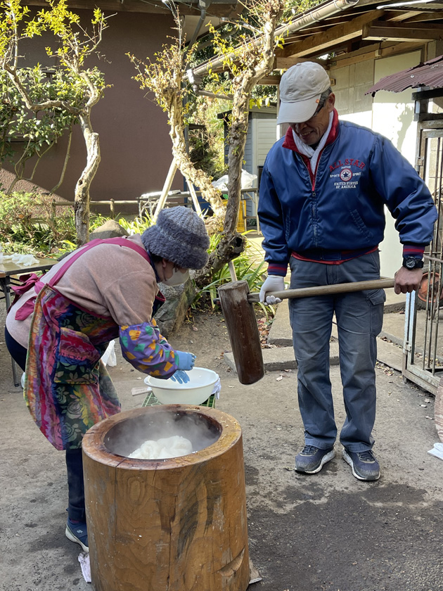 餅つきは交代交代で。なんてったって、皆さんすぐに疲れてしまいますので。腰が痛いの、腕が上がらないの、足元がふらつくの、などなど。