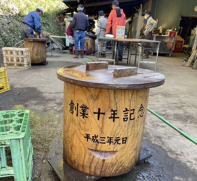 杵と臼 臼は平成3年とあります。平成3年は1991年ですので、この臼は34年もの。昭和以前の生まれの人にとっては、平成ってつい最近のことですよね。改めて年数を数えると、時間の経過に驚かれる人も多いのでは。